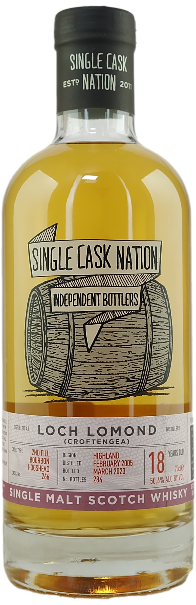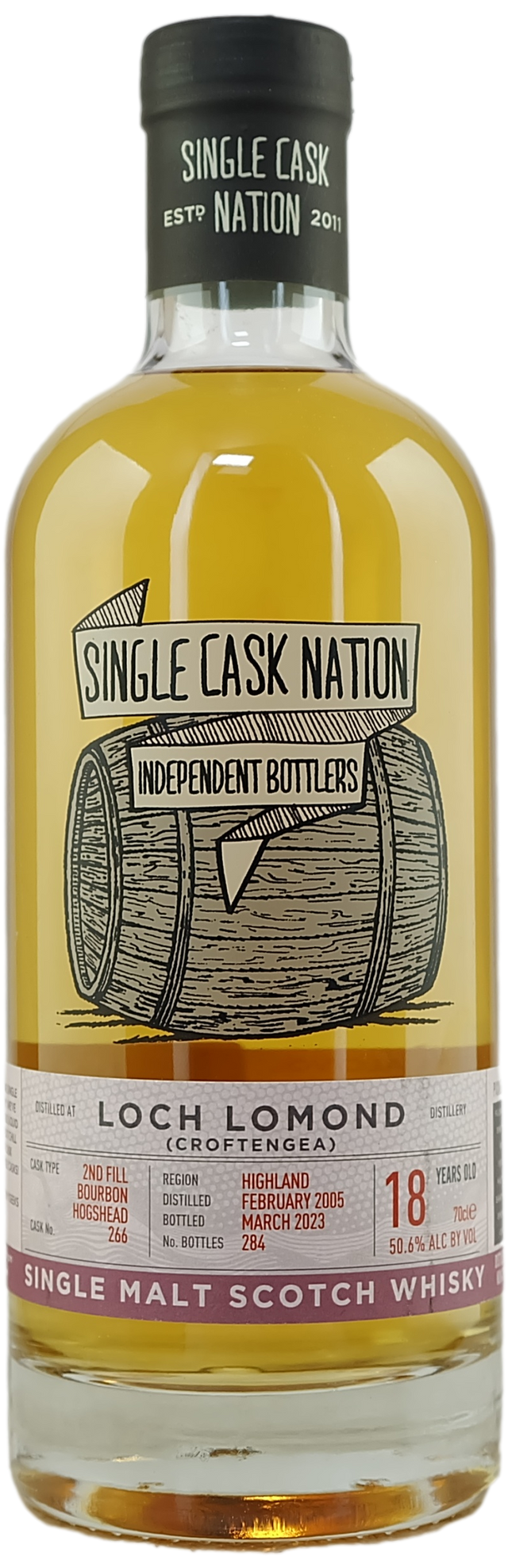 This Loch Lomond was distilled in 2005, aged 18 Years in an ex-Bourbon cask. It is heavily peated, under the style of Croftengea. At 50.6%, it drinks comfortably, with official notes of Honey, Cocoa, Pickled Onions and Smoke!