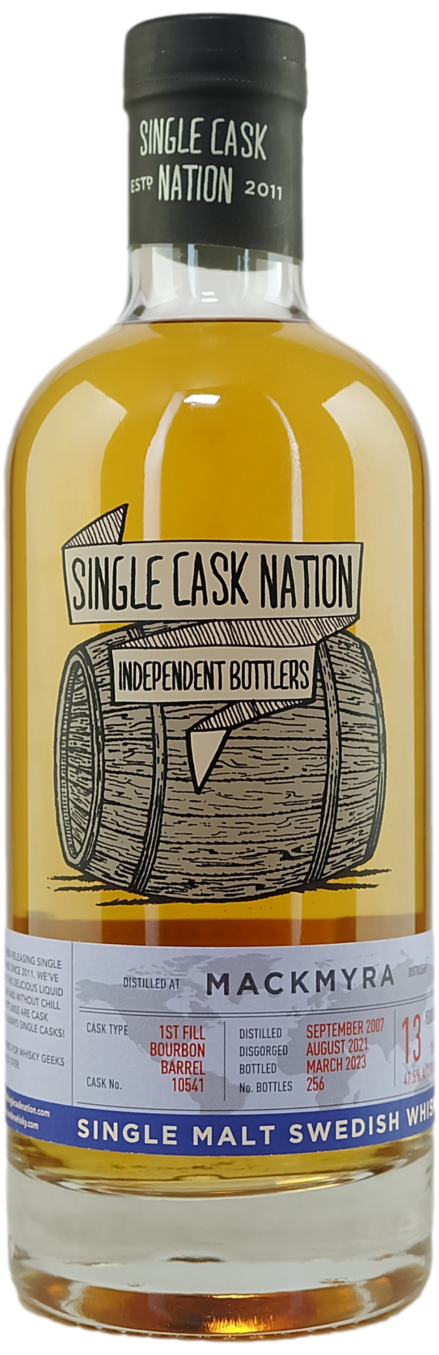 Distilled in September 2007, this Mackmyra (Sweden) Single Malt was aged in a first fill bourbon cask. Bottled at a rather comfortable 47.5%, it is elegant and oaky, with notes of baking spices and toasted nuts.
